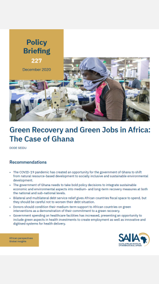 This paper shows that the Government of Ghana has an opportunity, despite the COVID-19 pandemic, to implement a green recovery through its economic revitalization programme.