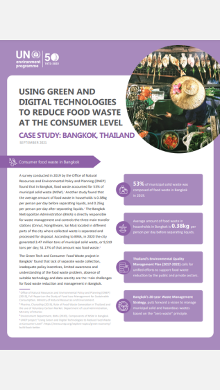 This case study shows how Bangkok can harness green and digital technologies to reduce food waste at the consumer level as well as contribute to the SDGs and climate goals, and build back better from the COVID-19 pandemic.