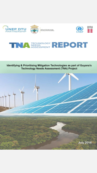 Guyana Technology Needs Assessment (TNA) project has mitigation and an adaptation component and this TNA report Technology Needs Assessment Report: Identifying and prioritizing mitigation technologies as part of Guyana's technology needs assessment (TNA) project for mitigation is one of the first main deliverables of the TNA project.