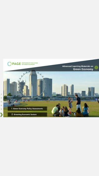 The PAGE Advanced Learning Materials is a set of 15 advanced learning units on green economy with thematic focus on “Green economy policy assessments” and “Greening economic sectors”.