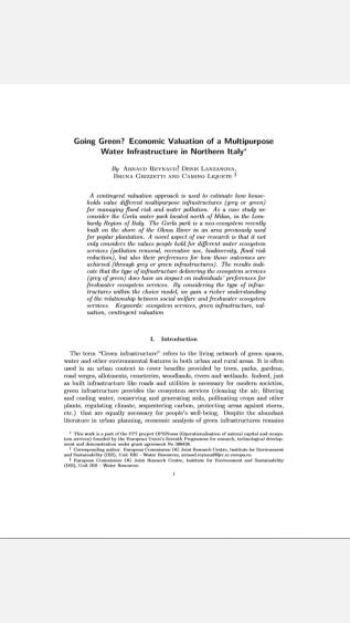 This case study applies a contingent valuation approach to estimate how households value different multi-purpose infrastructure (grey or green) for managing flood risk and water pollution. It considers the case of the Gorla water park located north of Milan, in the Lombardy Region of Italy.