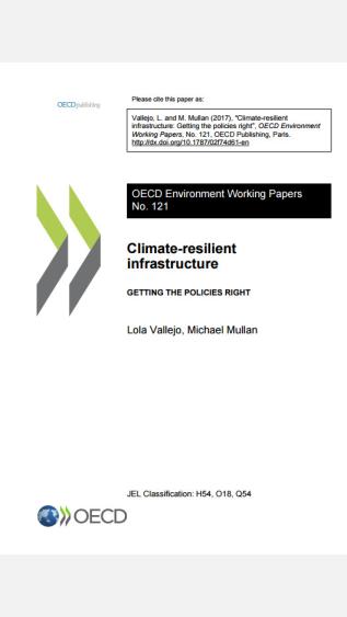 This paper provides a framework for action aimed at national policymakers in OECD countries to help them ensure new and existing infrastructure is resilient to climate change. It examines national governments’ action in OECD countries, and provides recent insights from professional and industry associations, development banks and other financial institutions on how to make infrastructure more resilient to climate change.