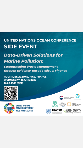 On June 11 2025 (14:00 - 15:15 CEST), the United Nations Office for Sustainable Development (UNOSD), in collaboration with the Green Growth Knowledge Partnership (GGKP), United Nations Environment Programme (UNEP), World Economic Forum, Global Plastic Action Partnership, and the Global Green Growth Institute, is hosting a side event at the UN Ocean Conference on "Data-Driven Solutions for Marine Pollution: Strengthening National Waste Management Systems through Evidence-based Policy and Finance".
