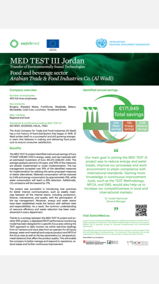 This case study outlines the economic and environmental benefits of implementing resource-efficient and cleaner production practices in a Jordanian company producing charcuterie using the UNIDO TEST methodology.
