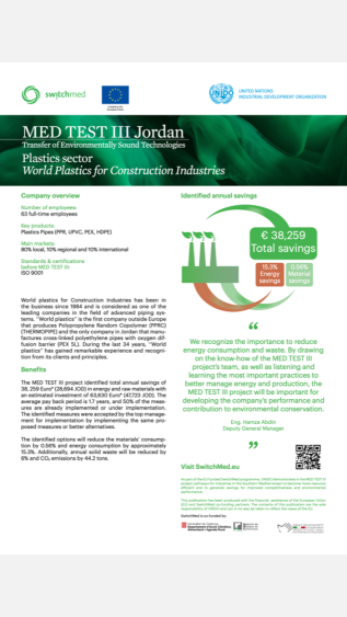 This case study outlines the economic and environmental benefits of implementing resource-efficient and cleaner production practices in a Jordan plastic producer using the UNIDO TEST methodology.