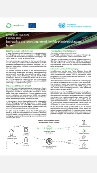 This case study explores a pilot project that UNIDO undertook together with the Packaging Recycling Organization in Israel (TMIR), packaging producers, and Israeli R&D institutions to identify ways to improve flexible packaging recycling rates.