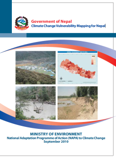 This study report, Climate Change Vulnerability Mapping for Nepal, is a supplementary effort to the National Adaptation Programme of Action (NAPA) process in Nepal. The NAPA was mandated to assess the climatic vulnerability throughout the country and also assess the impacts. This study had adopted the globally recognized process of vulnerability that the vulnerability is the function of exposure and sensitivity. The NAPA process of vulnerability assessment was not limited to the GIS-based vulnerability only that it was spread from desk review to extensive public consultation and field verification. The GIS-based vulnerability was taken as a tool to verify the information collected through those processes and also to add value to the available data presentation process.