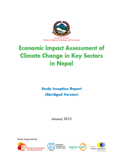 This project, Economic Impact Assessment of Climate Change in Key Sectors in Nepal, is being undertaken at the request of the Government of Nepal, and is supported by Climate and Development Knowledge Network (CDKN). This project was initiated to address the target as included in the Climate Change Policy 2011: Assessment of losses and benefits from climate change in various geographical areas and development sectors by 2013. The work is led by Integrated Development Society (IDS), Nepal, working with Practical Action Consulting Limited, Nepal, and the Global Climate Adaptation Partnership (GCAP) in the UK.