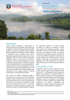 The Ministry of Population and Environment (MoPE) is leading the national process to identify and prioritise medium and long-term adaptation actions. This document, National Adaptation Plan Formulation Process: Approach paper, describes the MoPE's approaches to the preparation of the National Adaptation Plan.