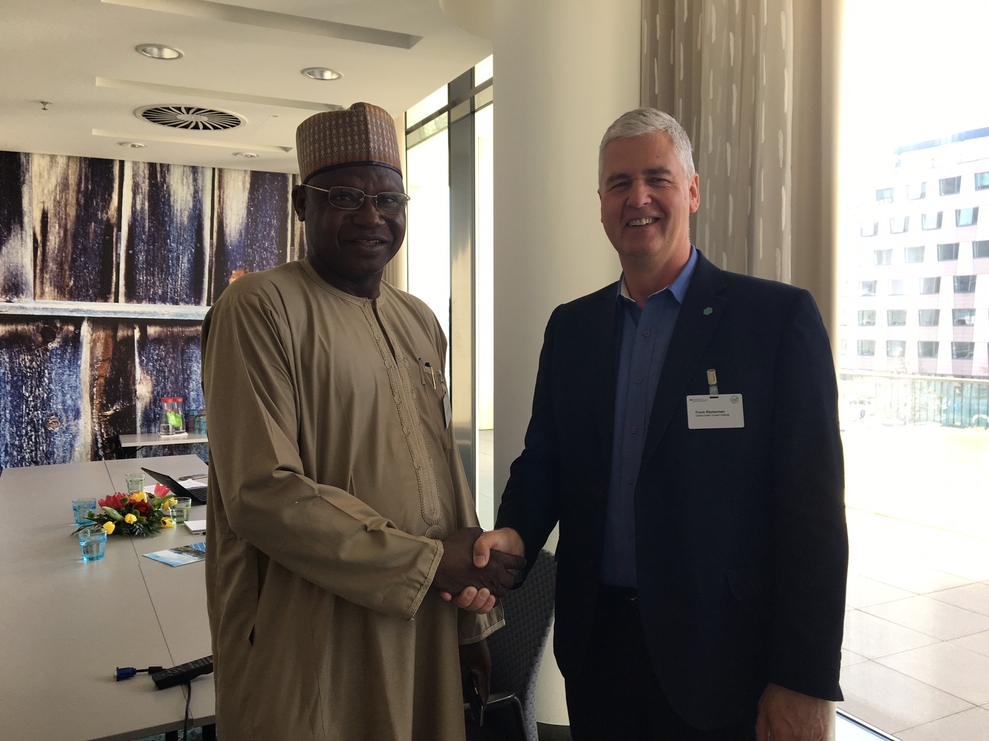 Above photo: Nigerian Honourable Minister of State for Environment, Ibrahim Usman Jibril, meeting with Dr Frank Rijsberman, Director General of the Global Green Growth Institute (GGGI).