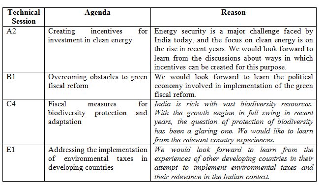 This conference is first of its kind that we will be attending and we are looking forward to hear policy discourse at the high-level panel discussions and the technical sessions to enrich our understanding on the recent ideas on what roles fiscal policies could play in achieving green economy in general and for developing countries like India in particular. We are also eagerly looking to learn from relevant policy research questions and methods of analysis that will be discussed during the conference.