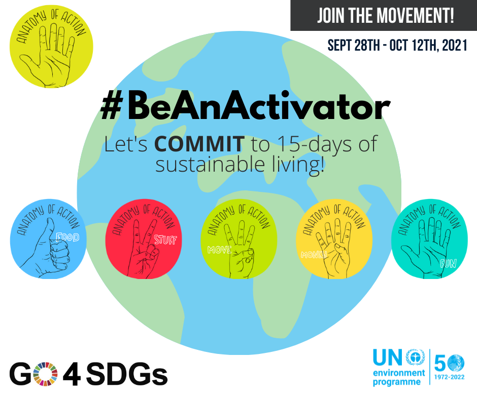 By participating in the 15-day #AnatomyofAction social media challenge, you’ll sample a number of tricks to become a sustainable living activator. Creating a new recipe with your leftovers, discovering local tourist attractions, and repurposing an old t-shirt are fulfilling activities that bring a positive climate impact.