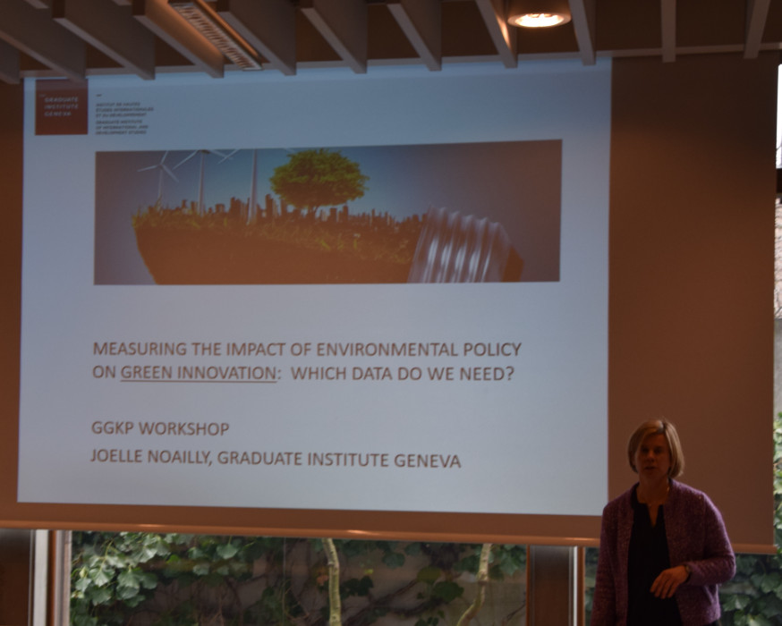 The workshop heard presentations from leading experts in measuring the trade and competitiveness impacts of environmental policies. These included GGKP Advisory Committee member Ann Harrison (Economist, Wharton School at the University of Pennsylvania) who discussed 'The role of environmental policy data in studies of economic competitiveness'. Other key speakers included Misato Sato (Environmental Economist, London School of Economics), Caley Johnson (National Renewable Energy Laboratory, Colorado, USA), Joëlle Noailly (Environmental Economist, Graduate Institute, Geneva), Alejandro Iza, IUCN (International Union for Conservation of Nature), Karolina Daszkiewicz, IEA (International Energy Agency), Ivan Haščič, OECD (Organisation for Economic Cooperation and Development), Sarah Booth, (Consultant – GGKP Trade and Competitiveness Research Committee), Florian Bauer, REEEP (Renewable Energy and Energy Efficiency Partnership), and Clara Brandi, DIE-GDI (Deutsches Institut für Entwicklungspolitik / German Development Institute). The meeting was chaired by John J. Maughan of the Green Growth Knowledge Platform.