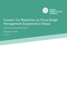 The Global Green Growth Institute (GGGI) - together with the Ministry of Water Supply and the Department of Water Supply and Sewerage Management of Nepal - conducted a series of consultations to identify current barriers to private investment in the sanitation sector. An initial assessment identified several policy interventions that could stimulate private investment in sanitation services in Nepal, particularly a reduction in the custom tax duties for the equipment used in fecal sludge management services.