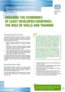 This policy brief draws the attention of policy-makers and social partners in least developed countries to the role of skills development in facilitating the building of greener economies, as a way to achieve sustainable development and poverty eradication. It has been written at the request of ILO constituents from LDCs, where environmental deterioration and the consequences of climate change are among the major challenges of the twenty-first century. While change is a challenge, it also offers economic and employment opportunities. The brief arises out of the Green Jobs Initiative, a partnership between the ILO, the United Nations Environment Programme (UNEP), the International Trade Union Confederation (ITUC) and the International Organization of Employers (IOE). It draws on research applied in policy design and numerous case studies of country experiences and good practices.