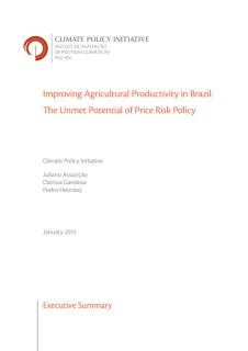 One crucial aspect of efficient land use is agricultural risk management, which includes protecting farmers from adverse shocks, such as unfavorable weather and pests, and from price risk caused by volatility in output prices. The latter is currently a major concern for Brazilian farmers and policymakers — not only because unmanaged price risk can result in low income for farmers, and thereby affect productivity, but moreover because it can restrict farmers’ ability to raise credit, which can affect agricultural growth more broadly.