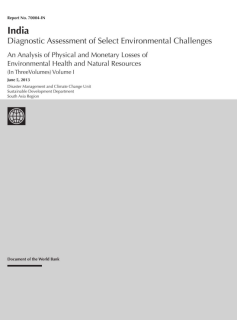 This report provides estimates of social and financial costs of environmental damage in India from three pollution damage categories: (i) urban air pollution, including particulate matter and lead; (ii) inadequate water supply, poor sanitation, and hygiene; (iii) indoor air pollution; and four natural resource damage categories: (a) agricultural damage from soil salinity, water logging, and soil erosion; (b) rangeland degradation; (c) deforestation; and (d) natural disasters. The estimates are based on a combination of Indian data from secondary sources and on the transfer of unit costs of pollution from a range of national and international studies. The quantification and monetary valuation of environmental damage involves many scientific disciplines including environmental, physical, and biological and health sciences, epidemiology, and environmental economics. Estimates of the costs of degradation are generally reported as a percent of conventional gross domestic product (GDP). This provides a useful estimate of the importance of environmental damages but it should not be interpreted that GDP will increase by a given percent if the degradation were to be reduced to zero. Any measures to reduce environmental degradation will have a cost and the additional cost goes up the greater is the reduction that is made. Hence a program to remove all degradation can well result in a lower GDP. This report provides a measure of the overall damage relative to a benchmark, in which all damages related to economic activity are eliminated. The report is structured as follows: section one provides a summary of estimated social and financial costs of environmental damage; section two focuses on urban air pollution; section three deals with water supply, sanitation, and hygiene; section four focuses on indoor air pollution; section five focuses on land degradation, crop production, and rangeland degradation; and section six deals with forest degradation.