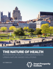 The natural environment is important for human health. Greater access to parks, trees and greenspaces in dense urban areas is linked to lower risks for several of the leading causes of morbidity and mortality in Canada. The Nature of Health report explores the opportunity to leverage these connections and illustrates the role that nature-based solutions can have for building healthier and more resilient Canadian communities.