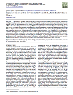 The concept of payments for ecosystem services (PES) has recently emerged as a promising tool for enhancing or safeguarding the provision of ecosystem services (ES). Although the concept has been extensively scrutinized in terms of its potential positive and negative impacts on the poor in developing countries, less attention has been paid to examining the role of PES in the context of adaptation to climate change. PES has some potential to contribute to adaptation to climate change, but there are also risks that it could undermine adaptation efforts. In order to maximize synergies and minimize trade-offs between PES and adaptation, it is important that the conceptual links between both are made explicit. The present article presents the main conceptual links between PES and adaptation to climate change and suggests ways of making PES pro-poor and pro-adaptation. Drawing upon the concepts of vulnerability, adaptive capacity, and socioecological systems, it is suggested that PES can potentially contribute to adaptation in three main ways: through enhancements in the provision of ecosystem services, by enhancing adaptive capacity in the way PES is designed and implemented, and by providing an incentive mechanism to adopt specific measures for adaptation to climate change. Reflecting on the lessons from the PES and poverty literature, the article suggests ways to make PES pro-poor and pro-adaptation and concludes with further research needs in this area.