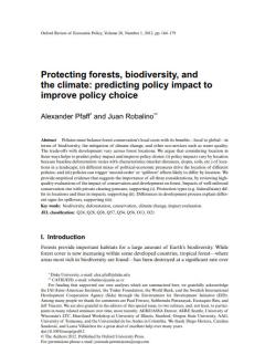 Policies must balance forest conservation’s local costs with its benefits—local to global—in terms of biodiversity, the mitigation of climate change, and other eco-services such as water quality. The trade-offs with development vary across forest locations. This article argues that considering location in three ways helps to predict policy impact and improve policy choice: (i) policy impacts vary by location because baseline deforestation varies with characteristics (market distances, slopes, soils, etc.) of locations in a landscape; (ii) different mixes of political-economic pressures drive the location of different policies; and (iii) policies can trigger ‘second-order’ or ‘spillover’ effects likely to differ by location. This article provides empirical evidence that suggests the importance of all three considerations, by reviewing high-quality evaluations of the impact of conservation and development on forest. Impacts of well-enforced conservation rise with private clearing pressure, supporting (i). Protection types (e.g. federal/state) differ in locations and thus in impacts, supporting (ii). Differences in development process explain different signs for spillovers, supporting (iii).
