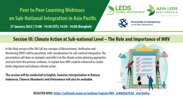 On 27 January 2022 (13:00-14:30 IST), the Low Emissions Development Strategies Global Partnership and Partnership on Transparency in the Paris Agreement are hosting the webinar Climate Action at the Sub-National Level–The Role and Importance of MRV.