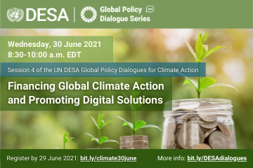 On 30 June 2021, UNDESA is hosting a webinar on "Financing Global Climate Action and Promoting Digital Solutions".