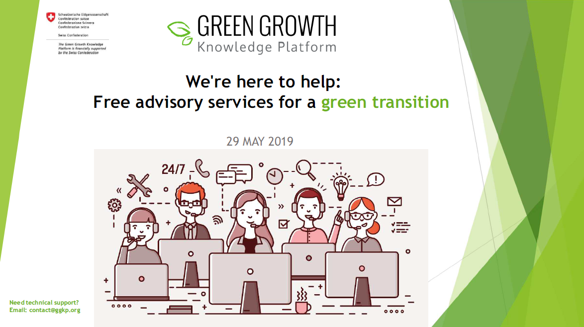 A number of advisory services are available free of charge to policy makers, policy advisors, and supporting institute to support the transition to an inclusive green economy.