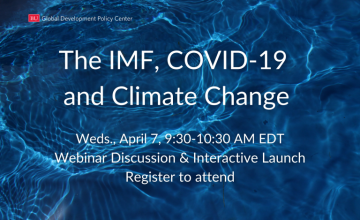 On 7 April 2021 at 9:30 (EDT), the Boston University Global Development Policy Center and experts from the IMF’s Independent Evaluation Office and Freie Universitat, Berlin is hosting a webinar on IMF surveillance, COVID-19 and climate change.