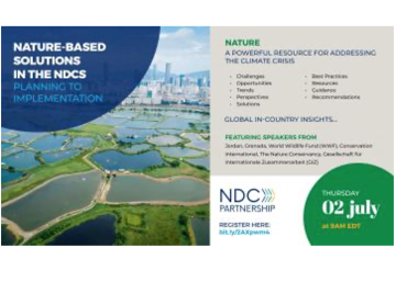 On 2 July 2020, 15.00 (CEST), NDC Partnership is hosting a webinar on nature-based solutions (NbS) in the NDCs: Planning to implementation.