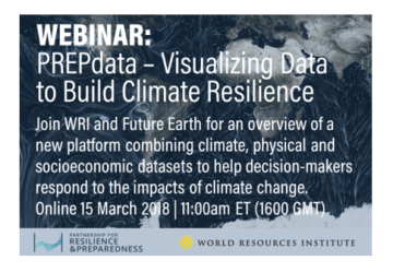 On 15 March 2018 (11:00 AM - 12:30 PM EDT), the Partnership for Resilience and Preparedness and the World Resources Institute are holding a webinar on "PREPdata - Visualizing Data to Build Climate Resilience".